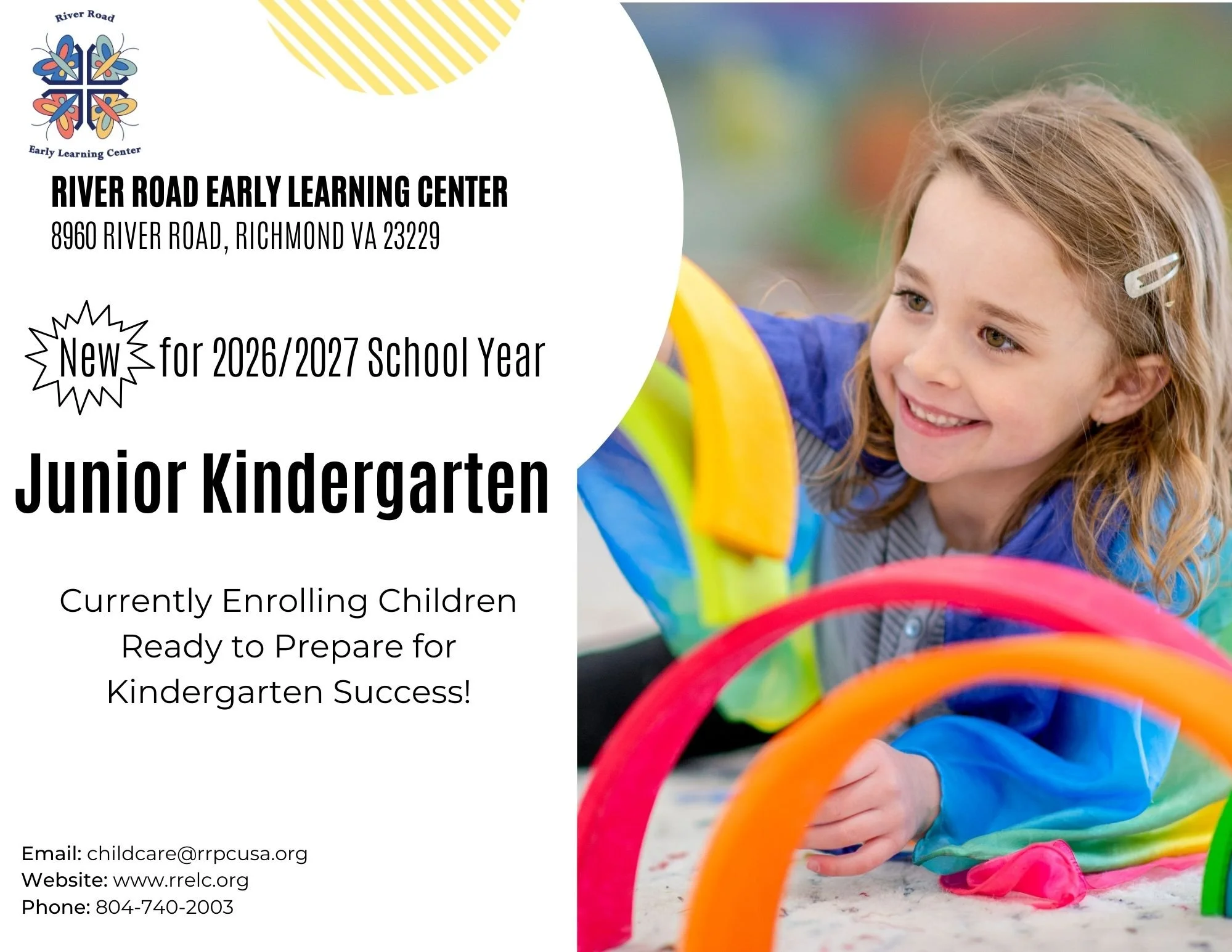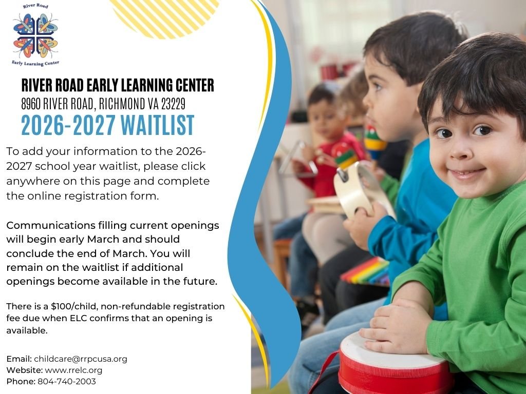 In partnership with family, church and community, the River Road Early Learning Center (RRELC) provides developmentally appropriate quality programs for children ages six weeks to five years in a Christian environment of love, encouragement, and acceptance.